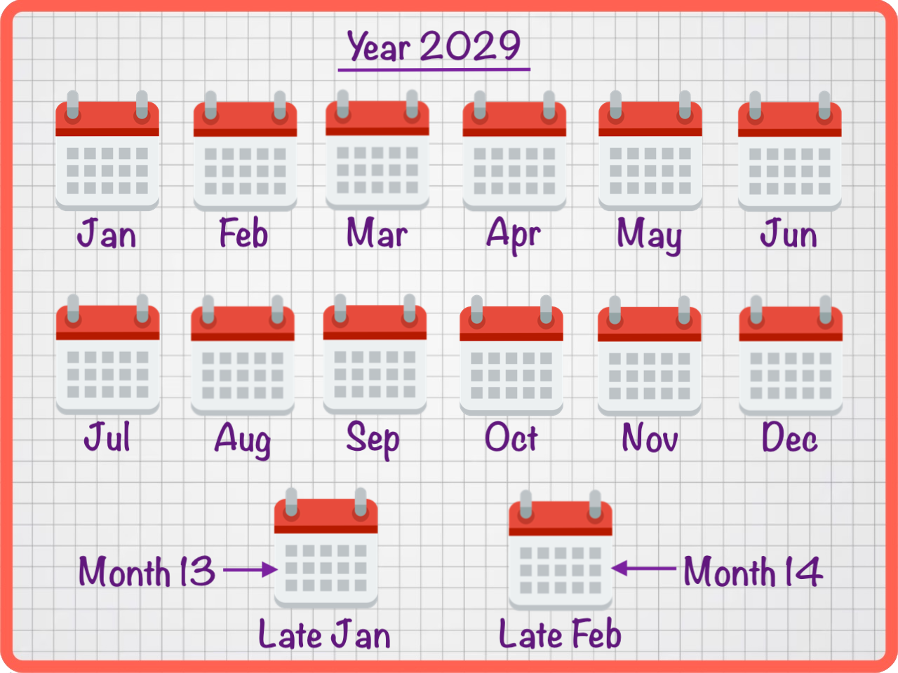 One minor problem is that 2029 will need to be 14 months long as shown ...